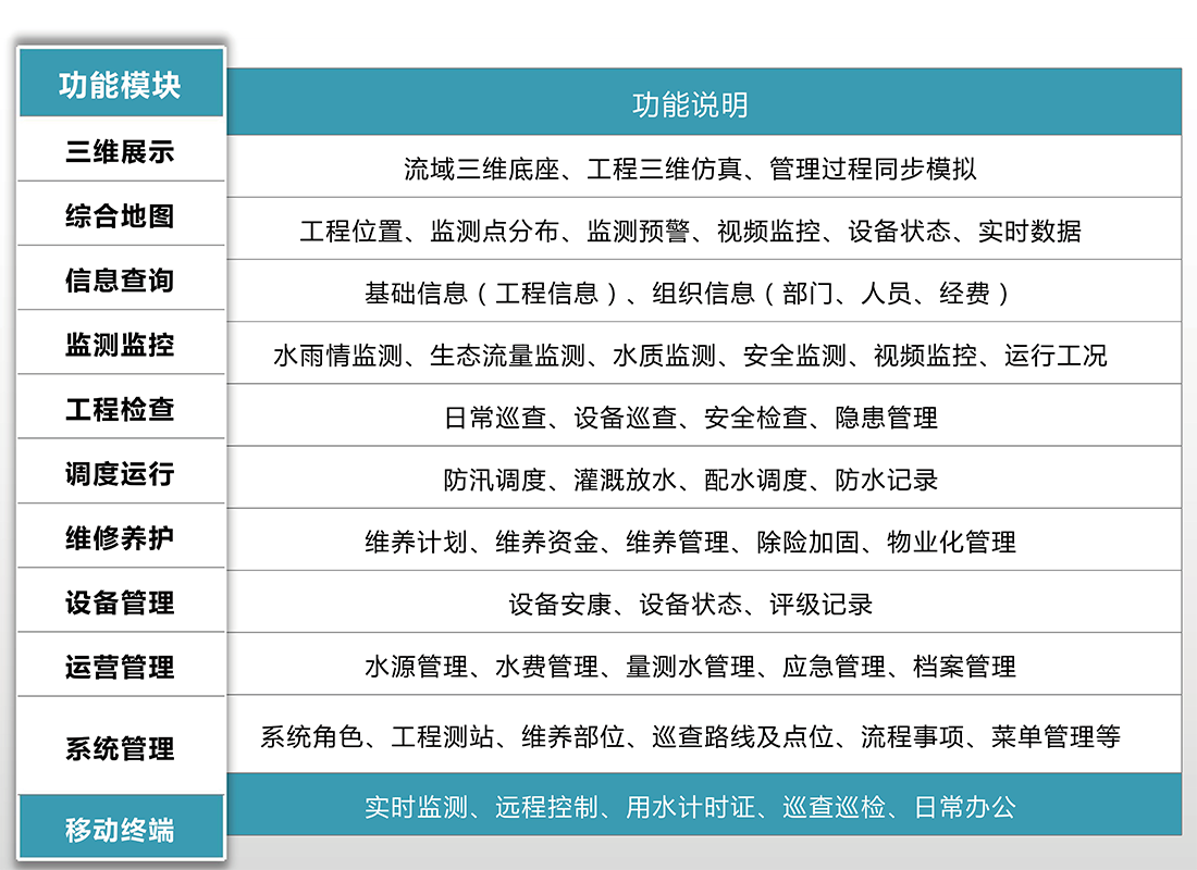 系統(tǒng)依托PLC、IOT等數(shù)字化技術(shù),從PLC到信息化實(shí)現(xiàn)全鏈路解決方案,實(shí)現(xiàn)水利工程信息化集成、信息化運(yùn)營。轉(zhuǎn)變水庫、水閘、泵站、堤防、山塘、灌區(qū)、水站、供水廠等水利工程日常管理模式,覆蓋工程狀況、安全管理、運(yùn)行管護(hù)、管理保障和信息化建設(shè)等5大建設(shè)需求。